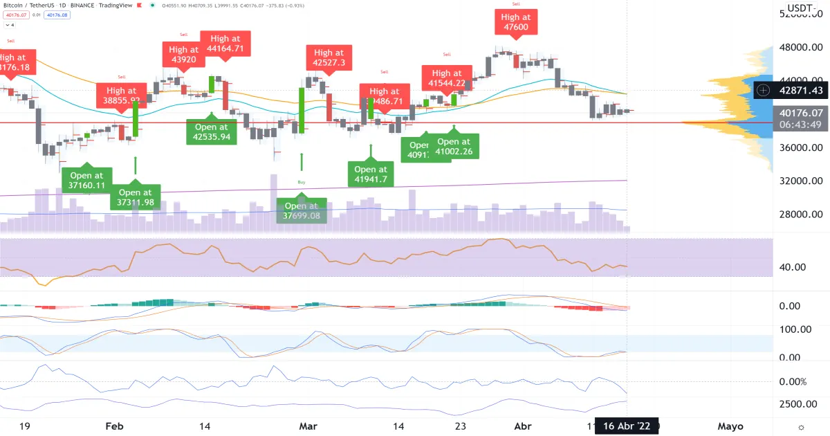 比特币 (BTC/USDT) 价格保持在 40,000 美元的支撑位
